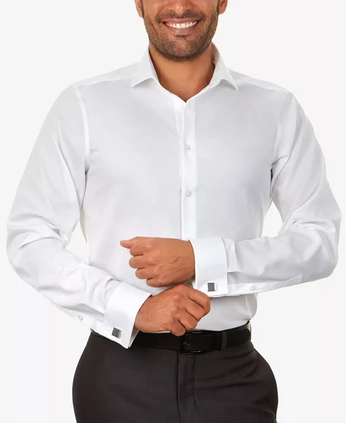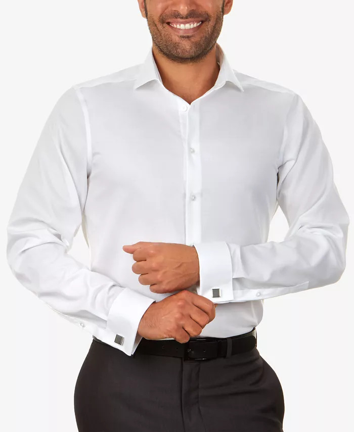 Calvin Klein Men's Slim-Fit Non-Iron Performance Herringbone French Cuff Dress Shirt