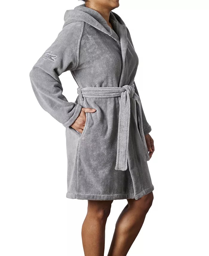 Wrap yourself in comfort with the Fairplay Robe from Lacoste Home, featuring a stylish solid ground and cozy hood.
