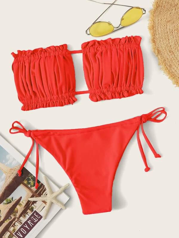 SEN Smocked Bandeau Tie Side Bikini Swimsuit