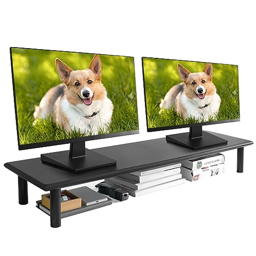Product Description According to research, a clean desk increases productivity and persistence by 84%. And if you want to get a dedicated space you can separate from the rest of your life, try to find a niche space you can use that is out of the rest of the household’s way as much as possible. A ROCDEER dual monitor riser is good choice. Premium solid bamboo legs and non-slip rubber feet provide a sturdy base for your heaviest monitors, laptops, printers, and even TVs. Never worry about whether this stand can handle it – if it’s under 130 lbs. Customer's Gallery Monitor Riser for 2 monitors Desk Shelf Large Monitor Stand Support Wide Range of Monitor and TV Size This monitor riser for desk measures 39" length by 10.62" inches in width, it provides ample space for up to two 27" PC/ one 75" TV screen, suitable for almost any modern work configuration. Bamboo Dual Monitor Shelf, Natural Bamboo Dual Monitor Shelf, Black Monitor Stand Riser with Adjustable Length and Angle, Natural ROCDEER 2 Pack Under Desk Drawer ROCDEER Vertical Laptop Stand Holder ROCDEER Wood Vanity Tray - 6-Piece Add to Cart Buying Options Add to Cart Buying Options Buying Options Add to Cart Customer Reviews 4.4 out of 5 stars 435 4.2 out of 5 stars 65 4.5 out of 5 stars 279 3.8 out of 5 stars 33 4.7 out of 5 stars 108 4.3 out of 5 stars 17 Price $62.99$62.99 — $54.99$54.99 — — $25.99$25.99 Material 100% Bamboo 100% Bamboo 100% Bamboo 100% Bamboo 100% Bamboo 100% Wood Drawer/Compartment ✓ ✓ ✓ ✓ Height Adjustable ✓ Length Adjustable ✓ From the brand Previous page When I started ROCDEER, One of the things I'm most proud of is that our products are not only made with sustainable materials but are also designed to last. Each product was designed with the attention to detail and commitment to sustainability. We believe that we strive to make products that are durable, functional, and stylish so that our customers can enjoy them for years to come. ROCDEER Dual Monitor Stand Visit the Store ROCDEER Desk Setup Visit the Store How did we get our start? Create a brand that would not only provide high-quality products but would also make a positive impact on the environment. i had always been passionate about sustainability and knew that i wanted to incorporate environmental into everything we did. Why do we love what we do? Looking back on our journey so far, I'm grateful for the team we've built and the customers who have supported us along the way. I'm excited to see what the future holds for ROCDEER as we continue to innovate and find new ways to make a positive impact on the world. Next page