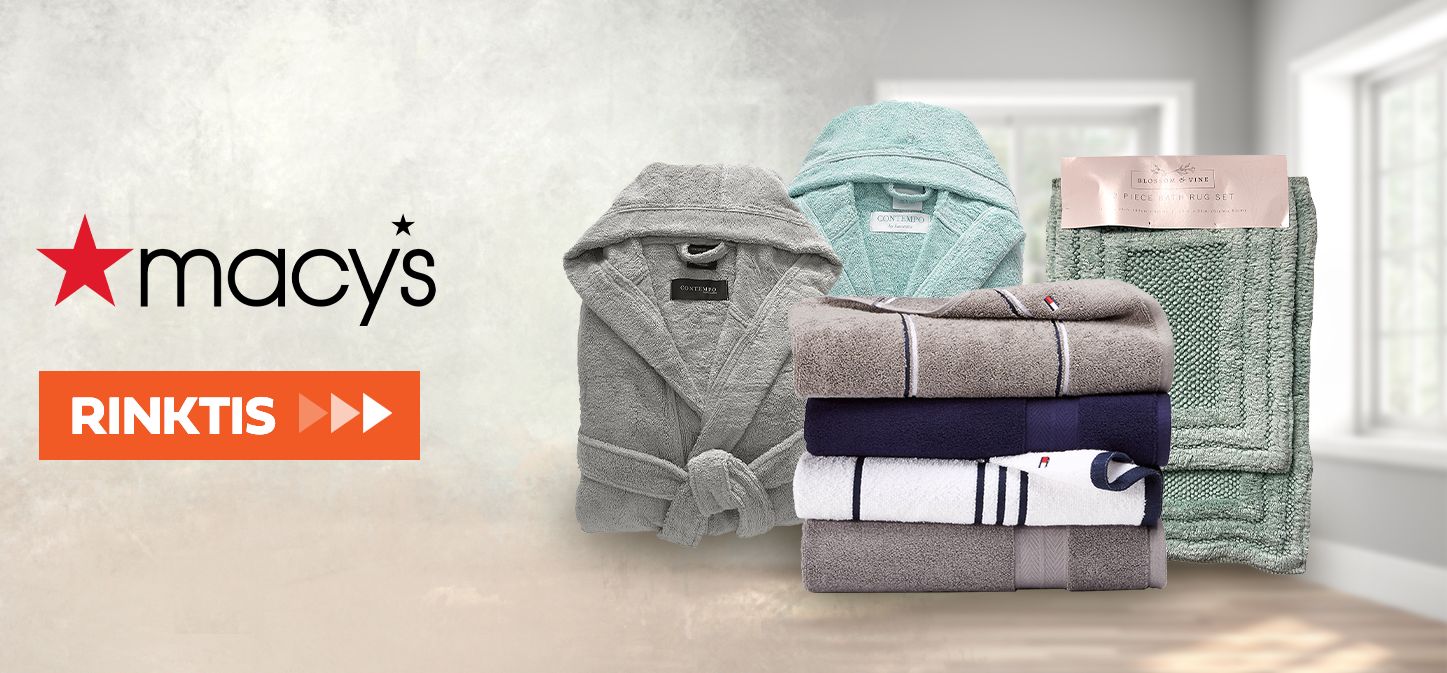 Daugelis Shipzee pirkėjų Macys puikiai pažįsta kaip firminių rūbų bei avalynės parduotuvę. Tačiau karantino metu Macys ne tik pildė drabužines, bet ir vonios kambarius! Lietuviai dažniausiai rinkosi aukštos kokybės, firminius chalatus, minkštutėlius rankšluosčius, stilingas vonios užuolaidas bei padus kutenančius vonios kilimėlius.